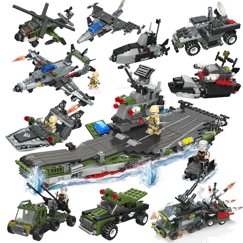Children's puzzle boy assembling building blocks plastic assembly car military aircraft carrier battleship to give a big gift