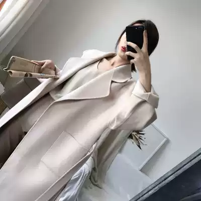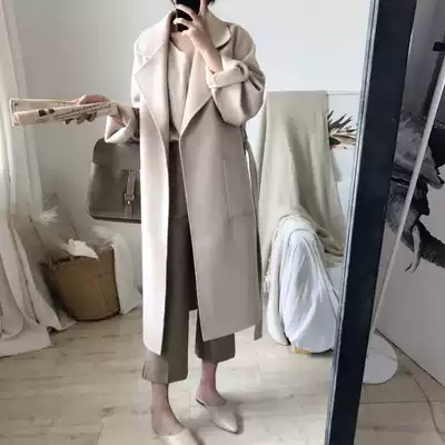 2021 New Korean version of white double-sided cashmere coat women's long version loose small wool woolen woolen coat