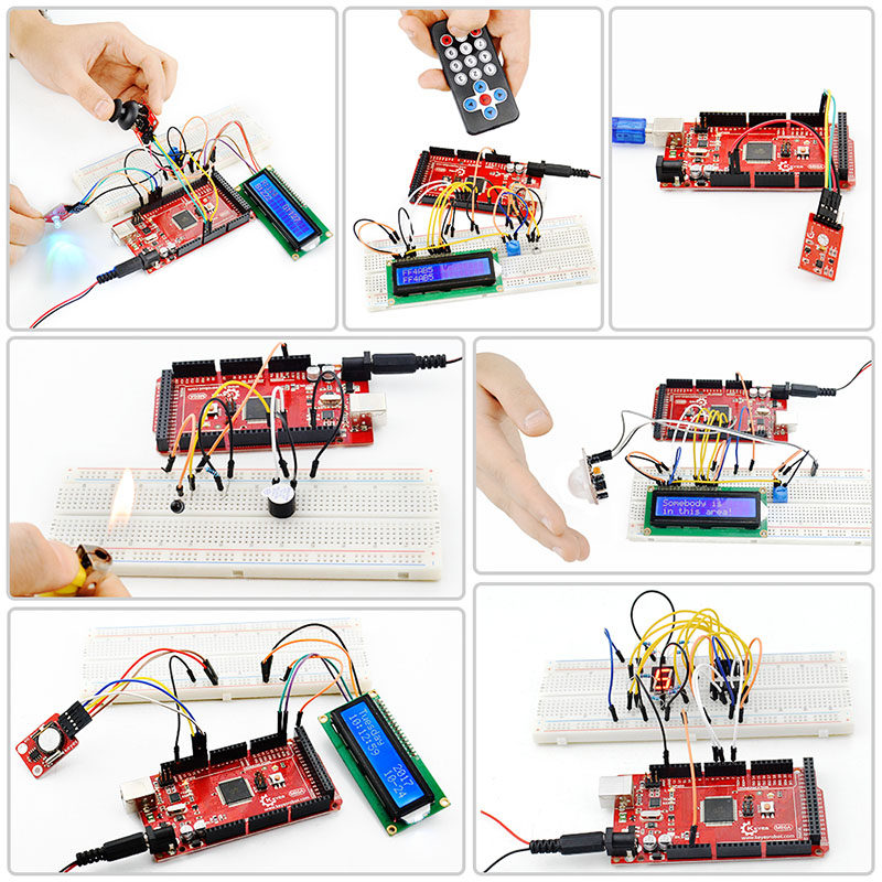 MEGA2560 R3 Development Board Send USB cable Transparent acrylic shell sensor extension board Extension Panel Outside Power Supply 9V 1A Base Start Learning Suite to Proficiency