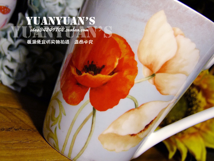 British Dunelm Romantic Red Flowers Printed Premium Bone Porcelain Mark Cup Coffee Cup Sub official web in sale