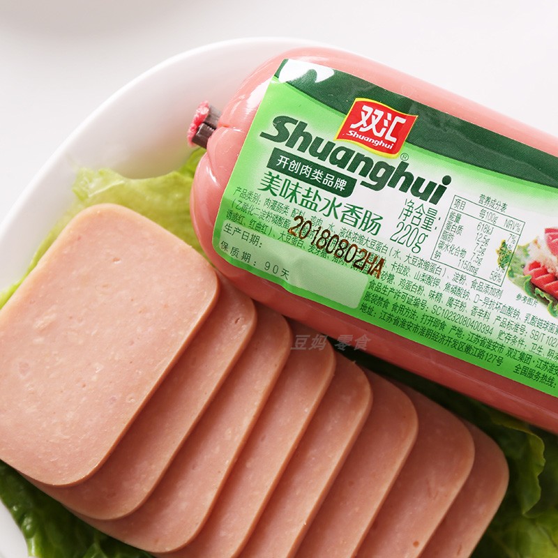 Double Sinks Delicious Brine Sausage 220g * 5 ready-to-eat extra-large square Ham Sausage Square Leg Slice Catering Fried Dish