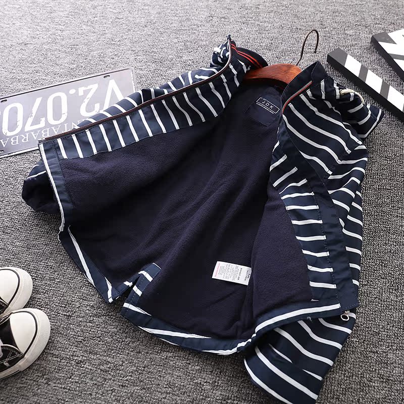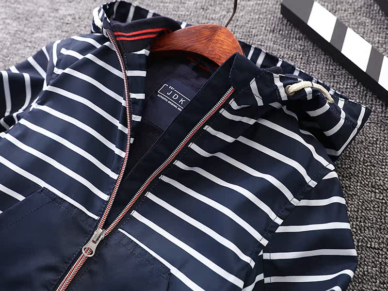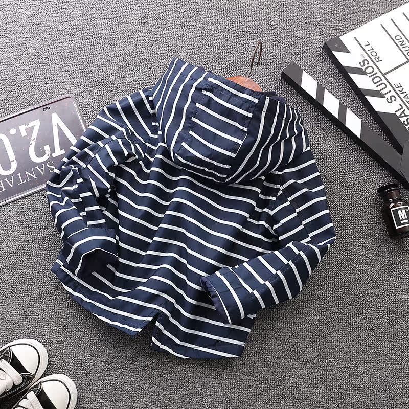 Boy Striped Jacket Children Spring Autumn Money Tandem Hat Men's Jacket CUHK Children Casual Windproof Jacket Autumn Dress Blouses
