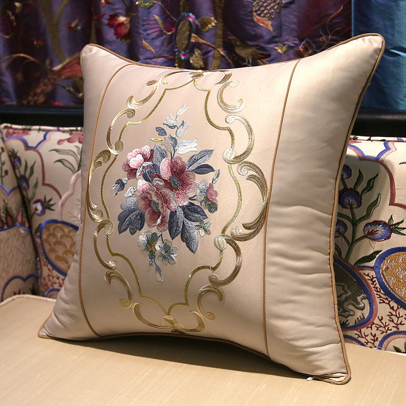 Modern minimalist Chinese style embroidery pillow sofa cushion bed embroidery pillow large backrest office chair waist pillow