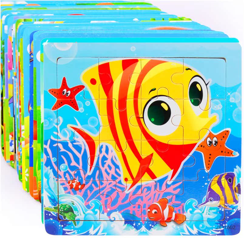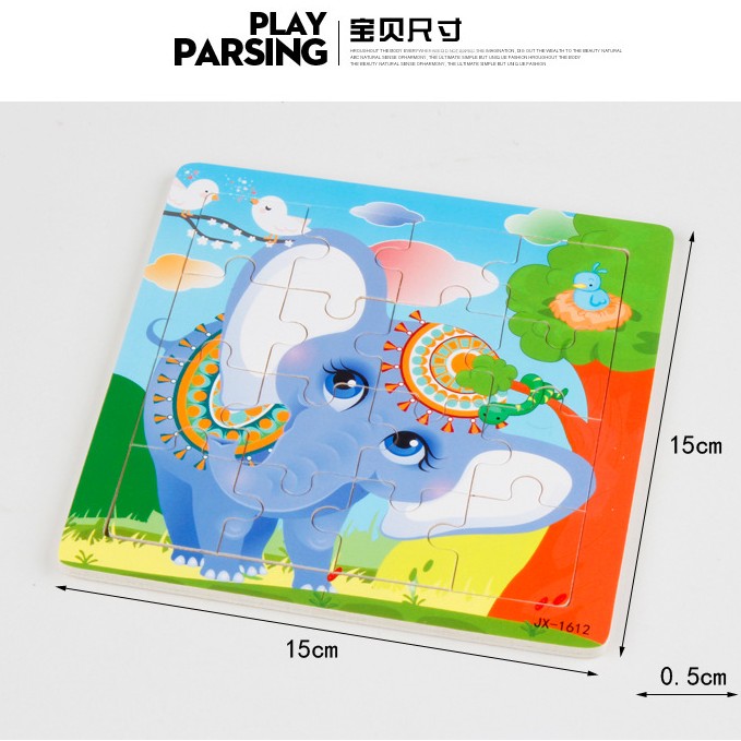 Wooden puzzle cartoon animation animal traffic assembly plane three-dimensional early education puzzle boy and girl baby 1--3 years old