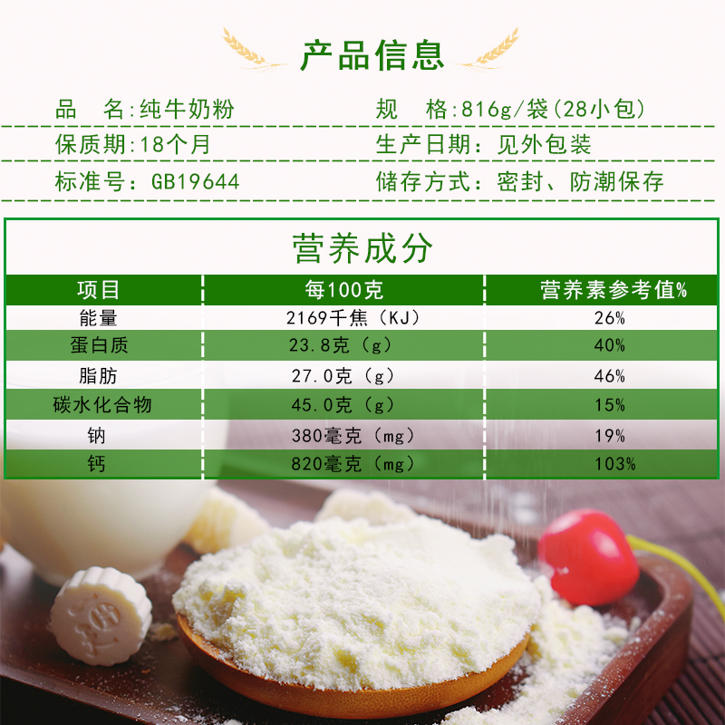 Pure cow milk powder 816 gr small package Inner Mongolia River set of milk powder full fat adult children's breakfast nutritious milk