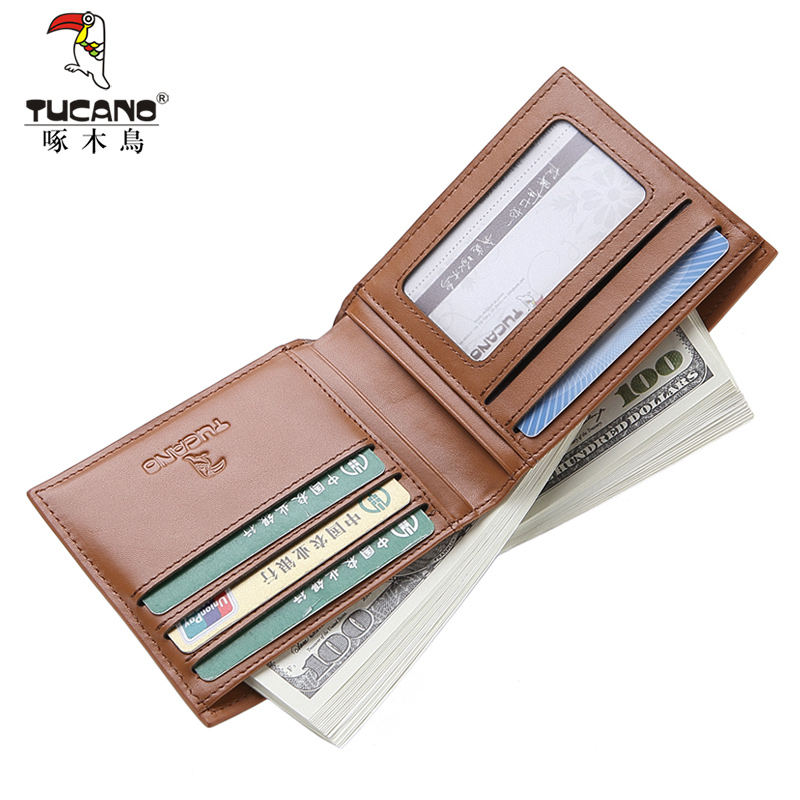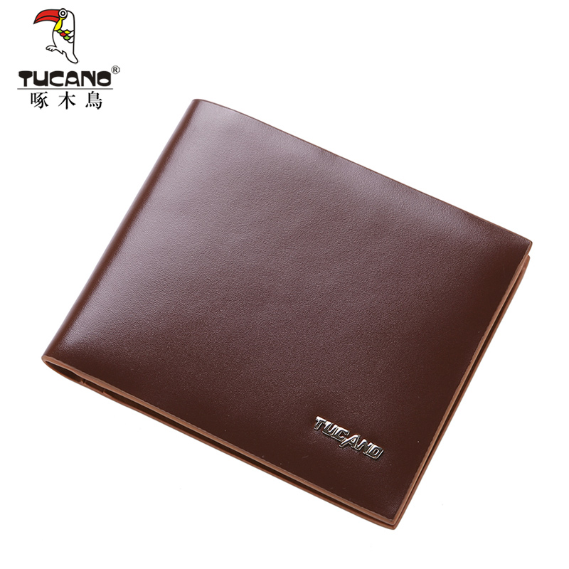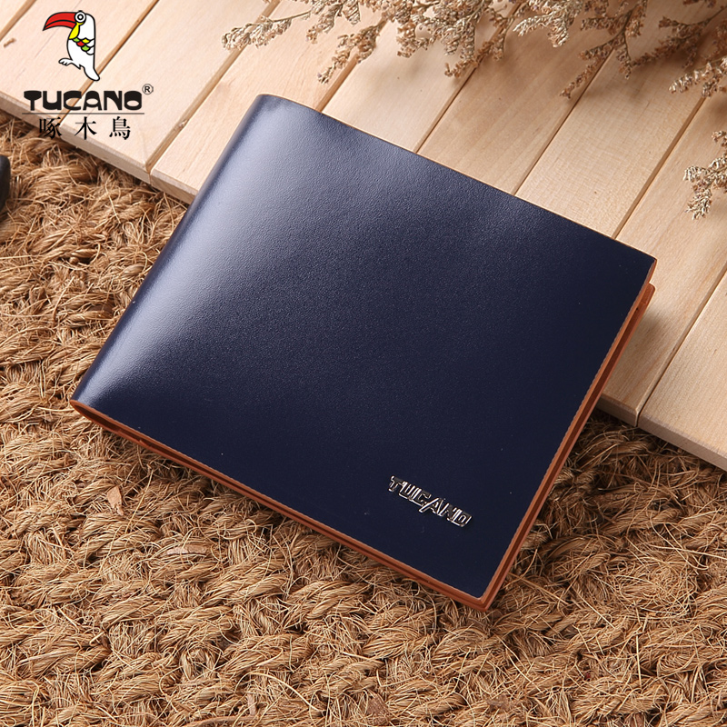 Woodpecker men's wallet Short two-story cow leather Korean version thin money clip minimalist fashion youth short clip tide