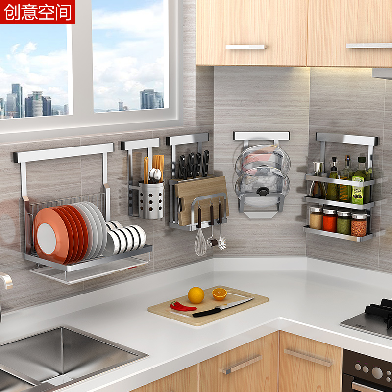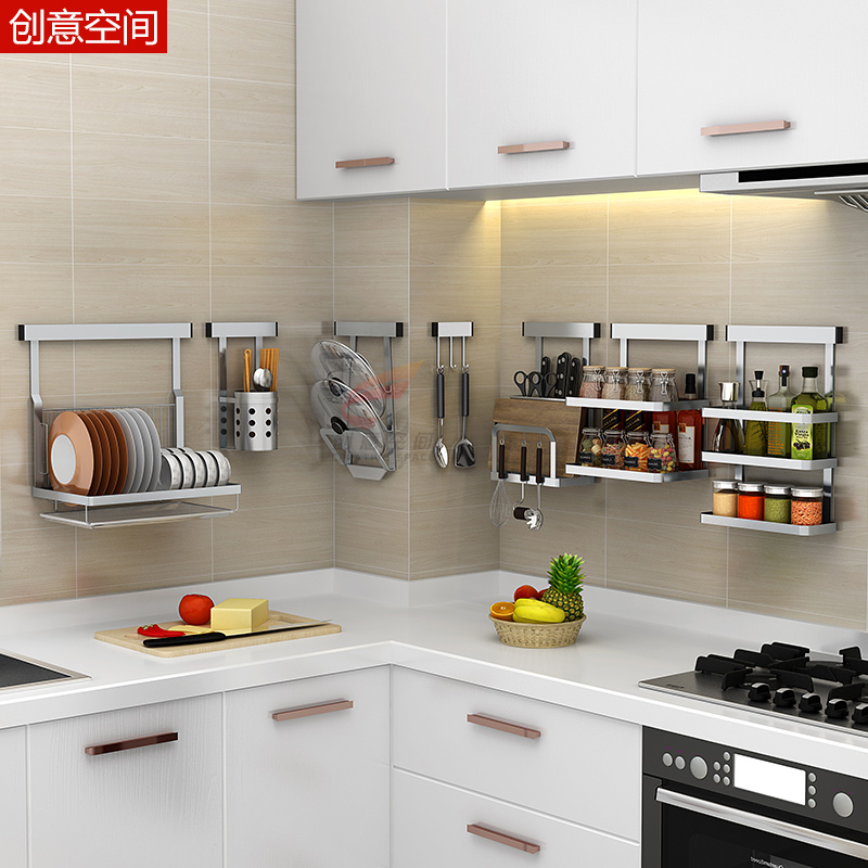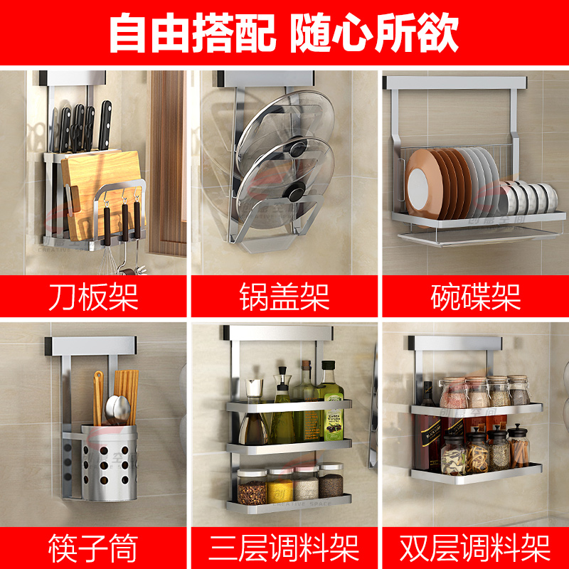 304 stainless steel kitchen shelve wall-mounted free of perforated seasoning jar frame Dish Holder pendant Pendant Lid Shelf