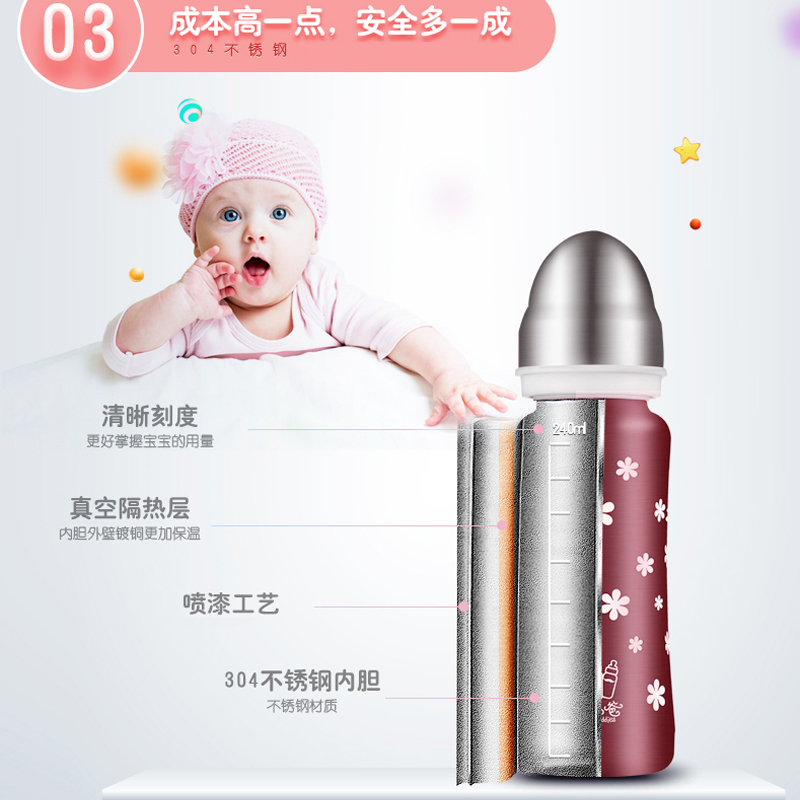 Baby thermos bottle baby with straw pacifier children stainless steel anti-fall milk pot three with one cup multi-purpose
