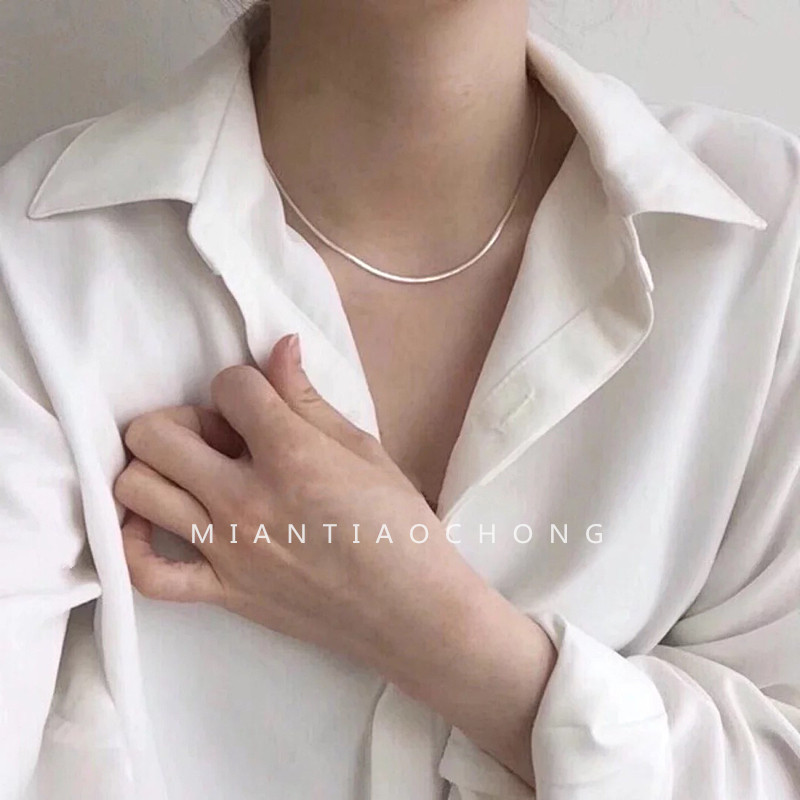Cotton strip worm plated pure silver 925 European and American classic gas field elegance cold light wind necklace coarse serpent bone chain single product lock bone