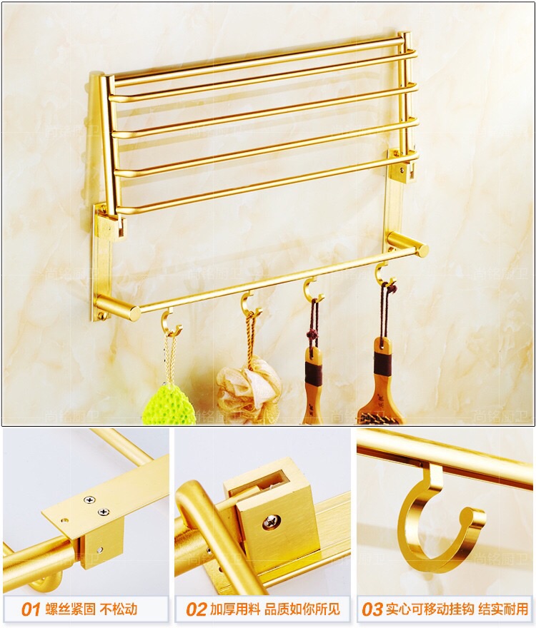European gold towel rack Bathroom drawn with thirteen layers of bath towel rack towel for storage rack