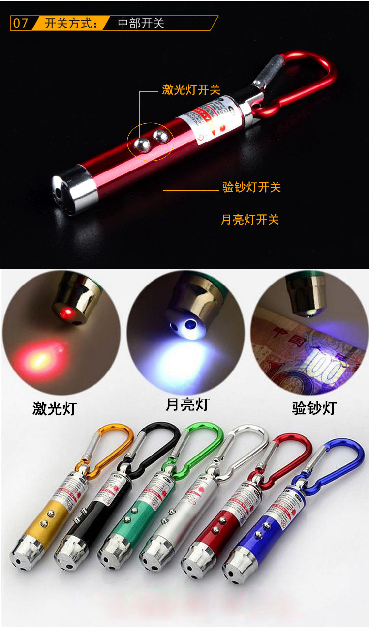 Children's toys Mini three-in-one projection lamp UV light inspection lamp flashlight laser lamp fluorescent agent detection pen