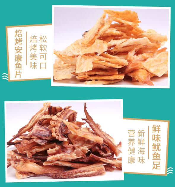 Dried yellow clams, monkfish fillets, goby fillets, squid, etc.