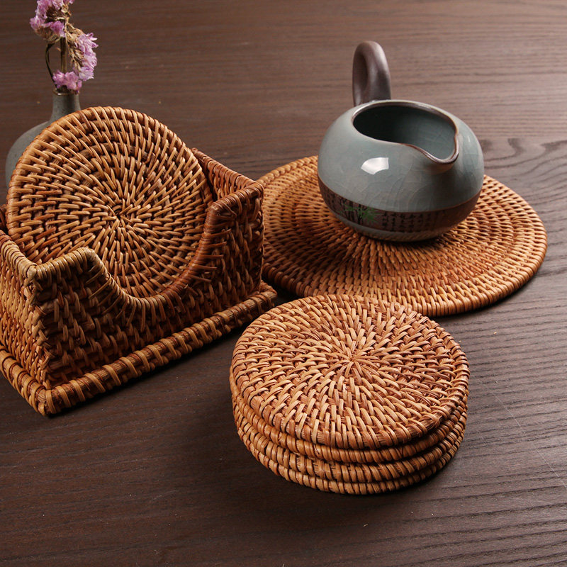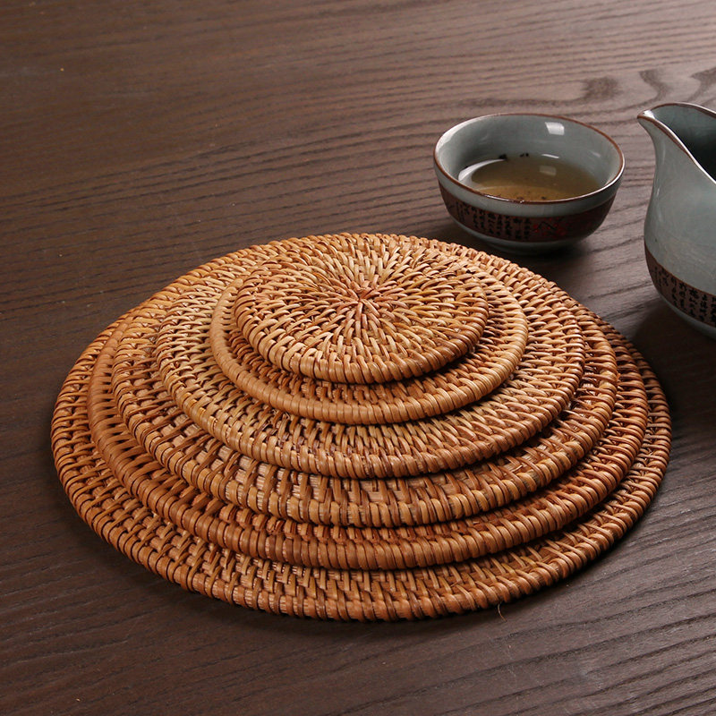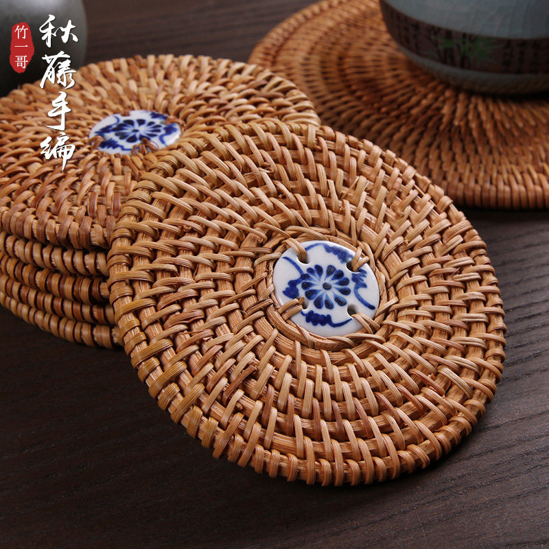 Vietnam old autumn rattan chic cup cushion tea cushion suit handwoven jug cushion square round 10 tea road Japanese style heat insulation mat