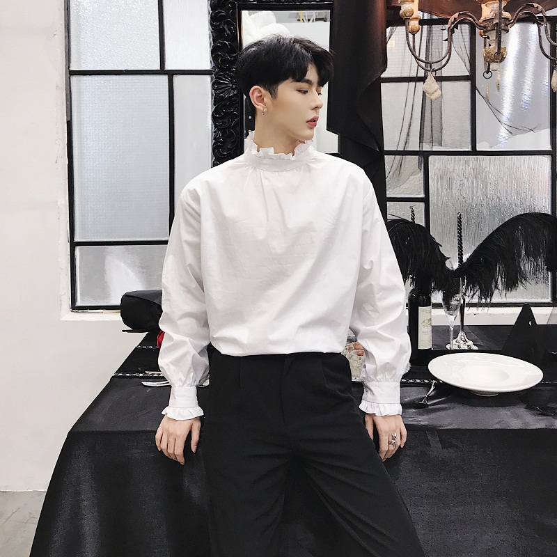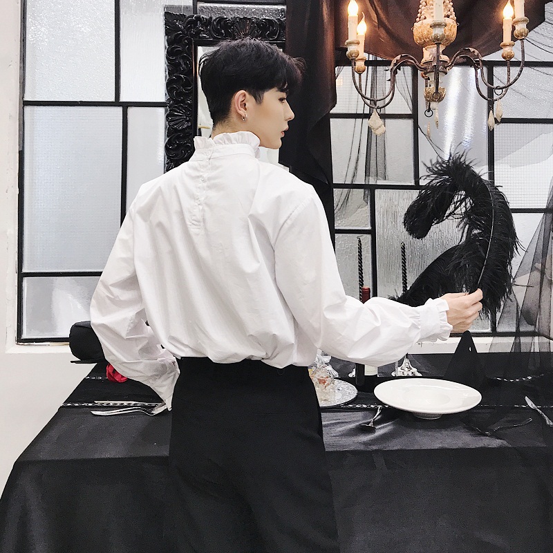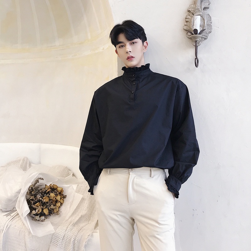 Fall new fashion Korean version hairstylist Loose Personality Shirt Upright design Shirt nightclub Chaumen Bottoms Shirts