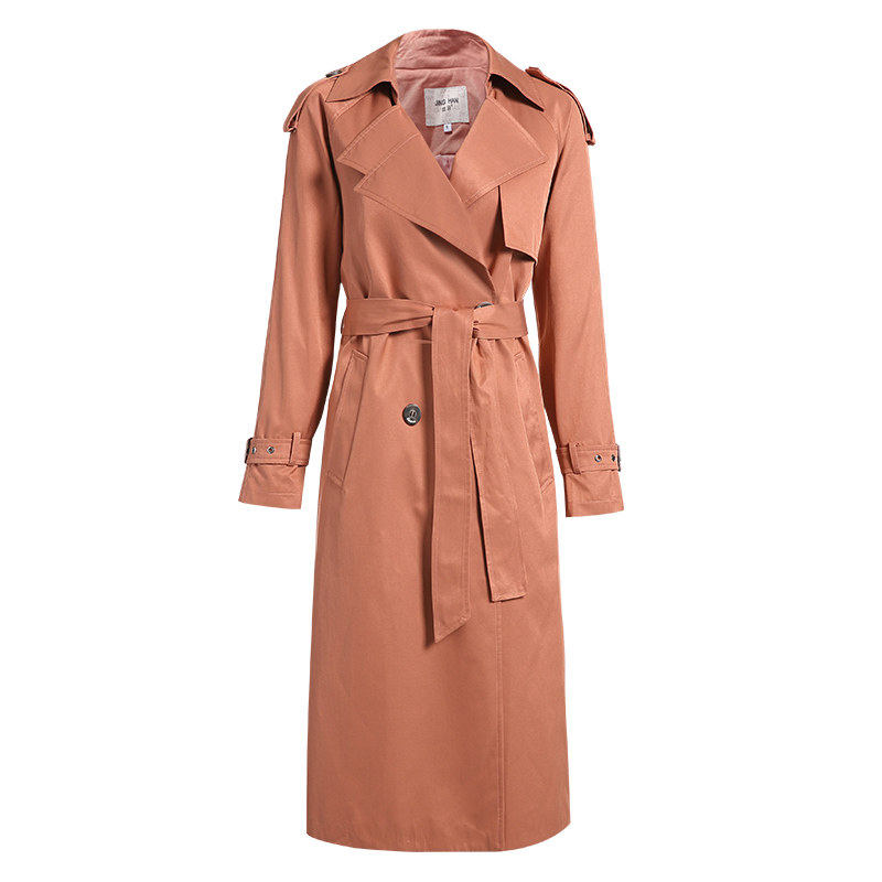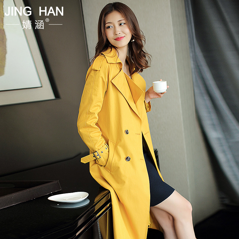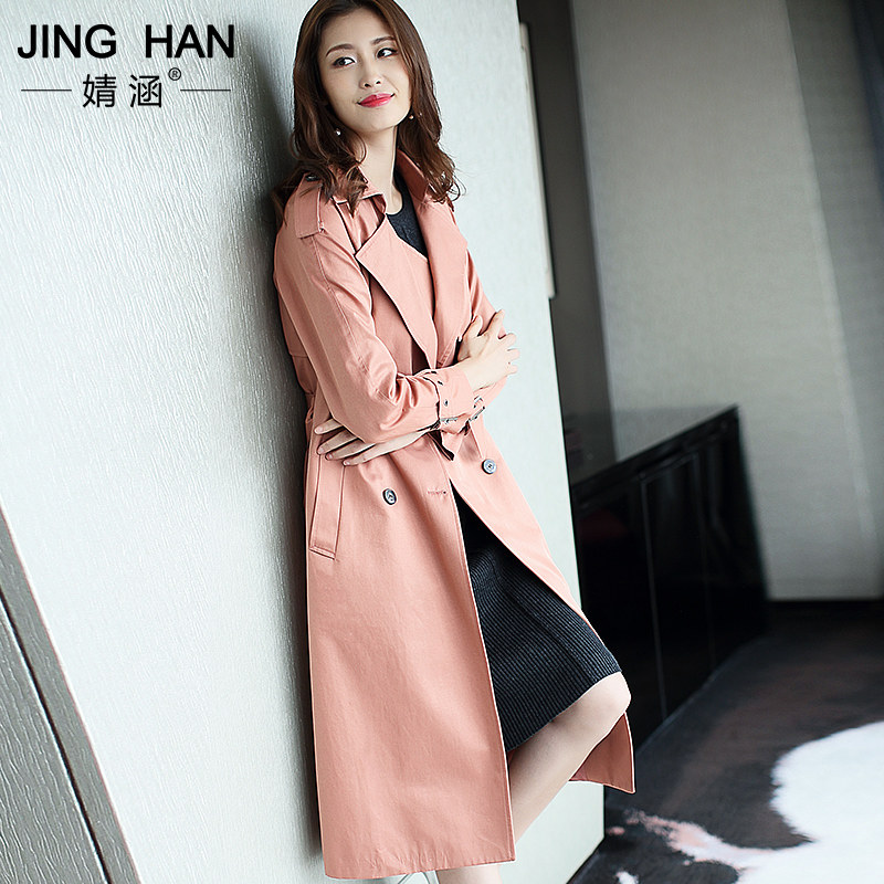 Jinghan windbreaker female Korean version autumn 2021 new Hong Kong style casual double-breasted waist long version over-the-knee temperament coat