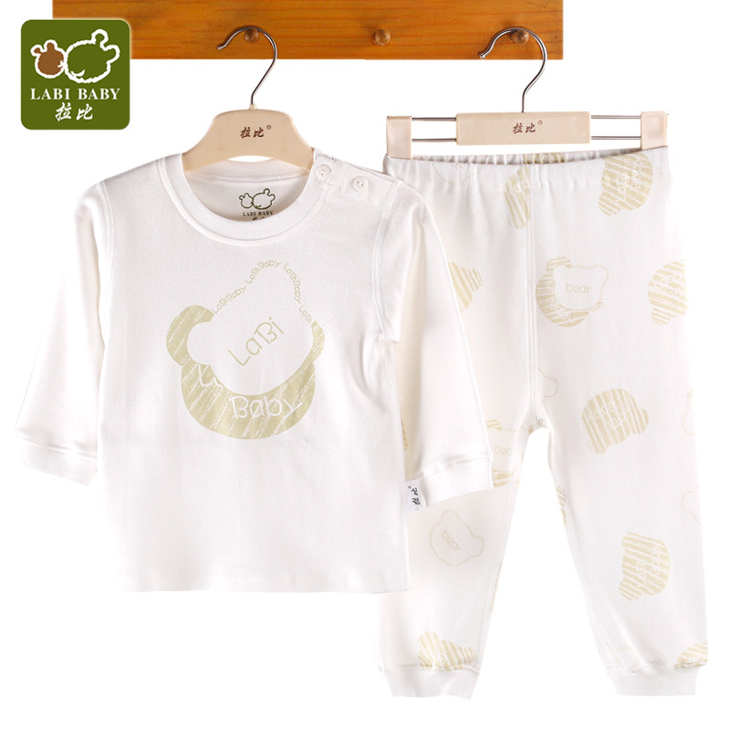 Rabbi underwear male and female baby spring new double-sided cloth clothes set bear imprint full open suit