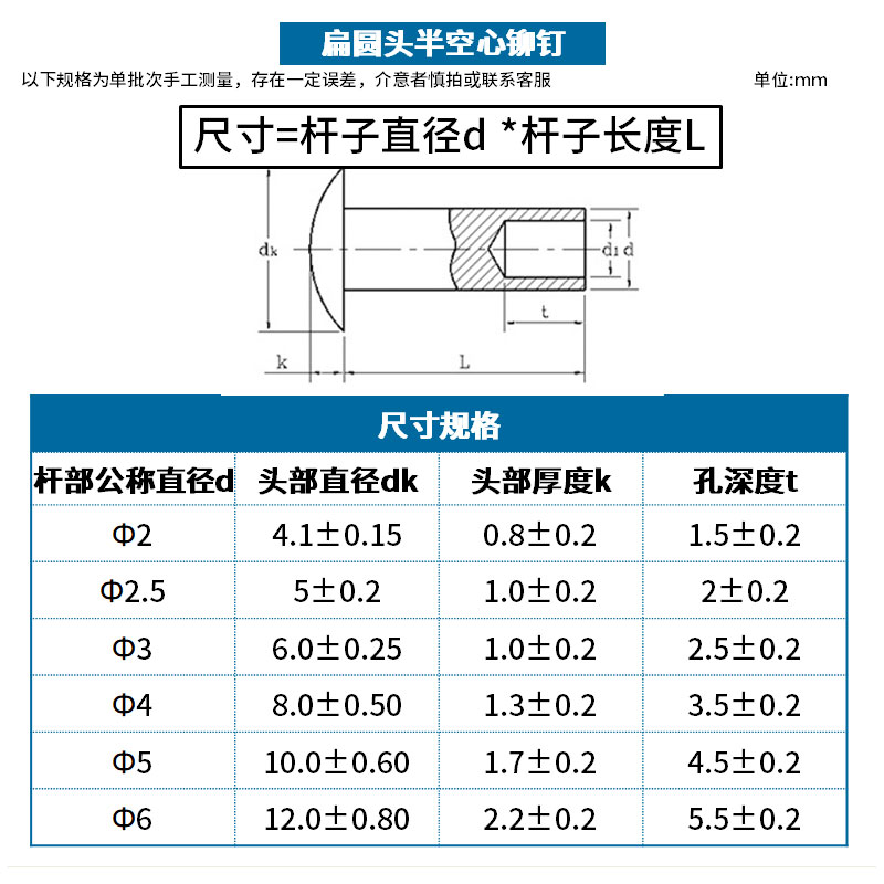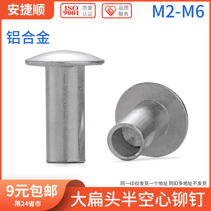 Aluminum large flat head semi-hollow rivet semi-hollow aluminum rivet round head hollow rivet M2M2 5M3M4M5M6 7L
