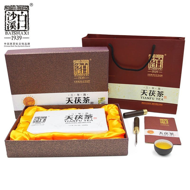 Authentic white sand creek 1kg-three years Chentian Fu tea Black tea Hunan Anhua Hand built gold flower with high mountain tea
