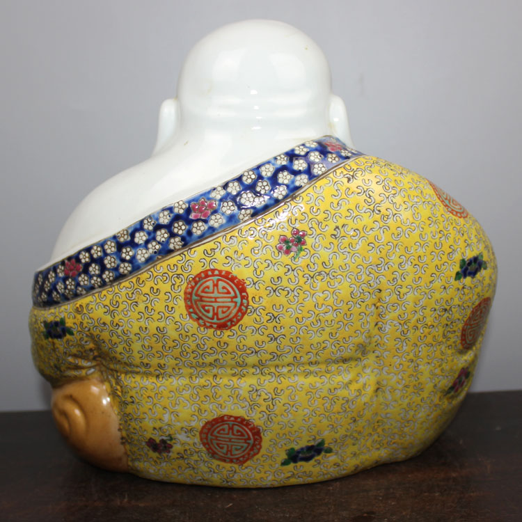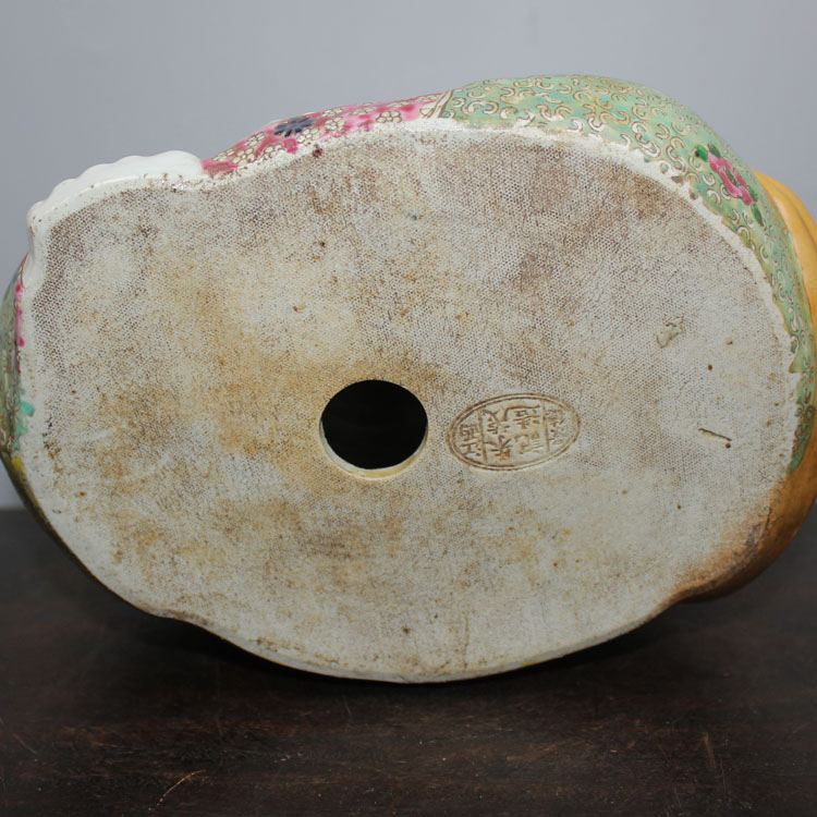 Republic of China pastel Miluo Buddha big belly Buddha carved Zhu Maoji made Buddha statues antique antiques collection home decoration Jingdezhen
