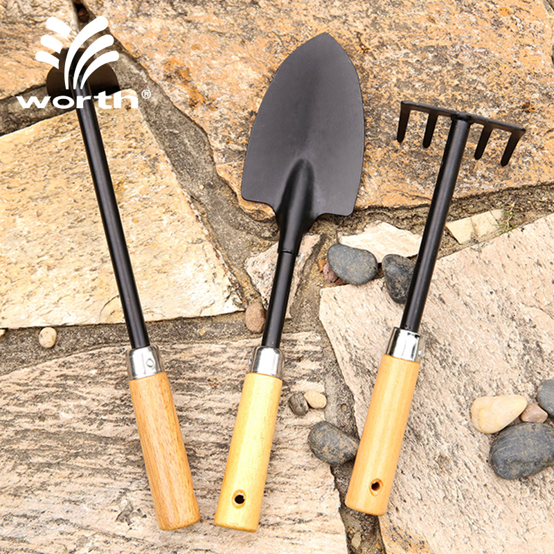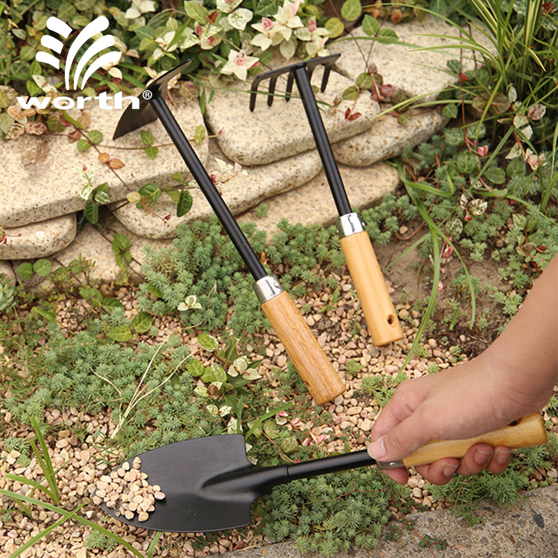 Woschworth gardening flower planting wooden handle shovel 3-piece set household potted planting flower shovel hoe tool