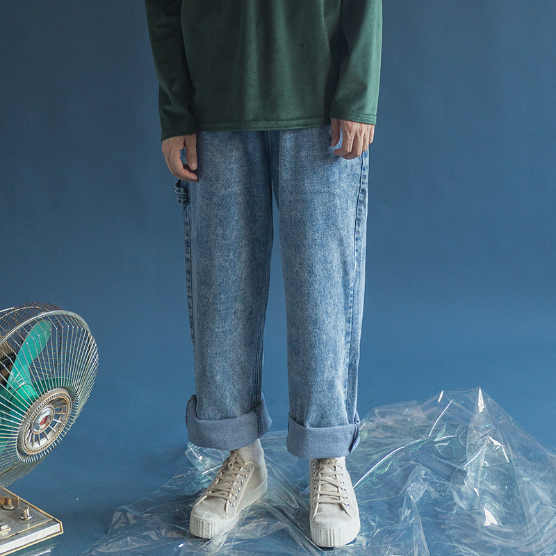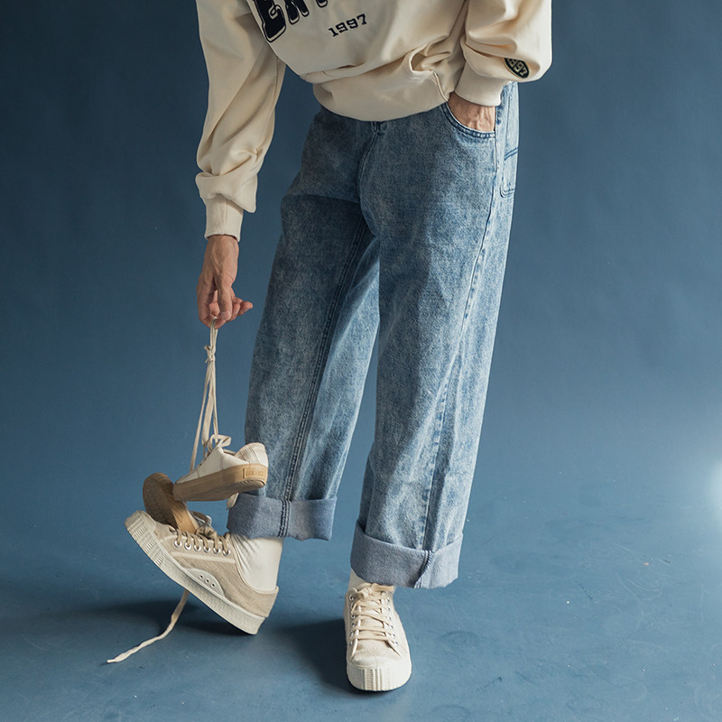 Japanese Harajuku retro snowflake washed old dad pants couple loose street nostalgic 90s jeans men