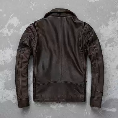 Leather leather clothing Men's short first layer cowhide slim-fit retro old motorcycle lapel large size jacket jacket anti-season
