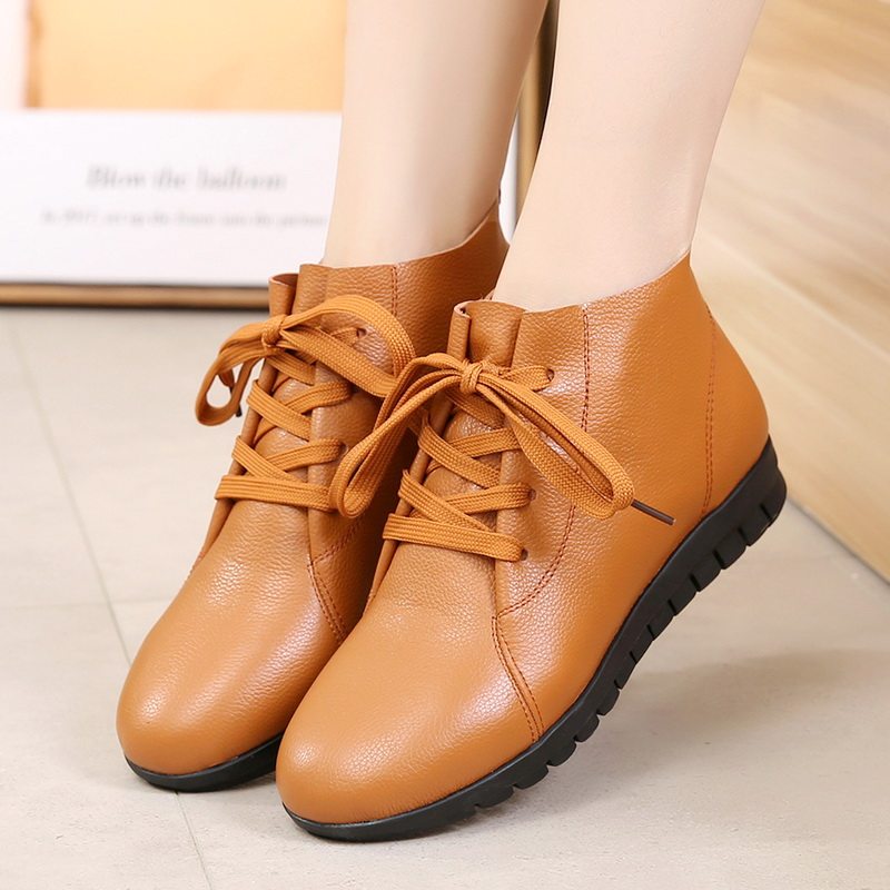 Large size women's shoes autumn 41-43 new all-match leather flat bottom deep mouth single shoes women's soft bottom lace-up small white shoes 34