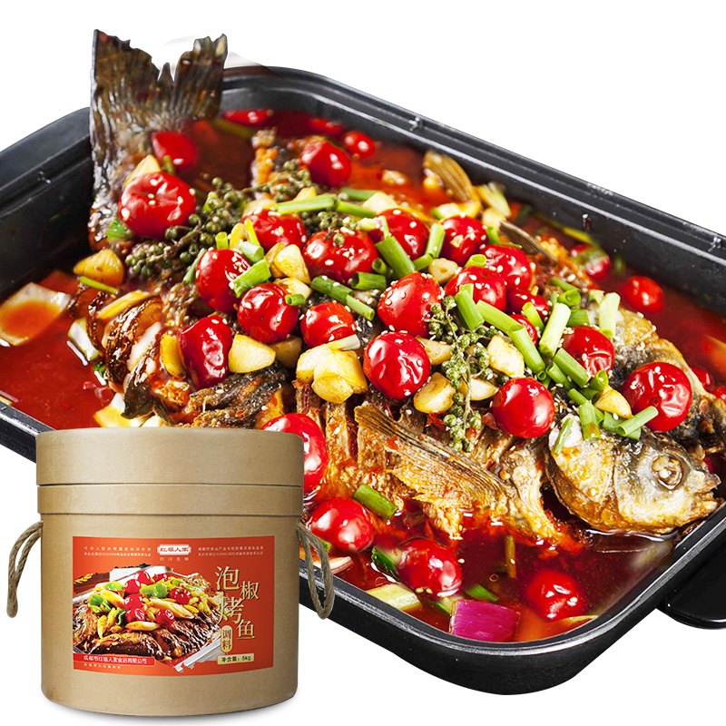 Bubble Pepper Grilled Fish Seasoning Commercial Recipe Chongqing Wanzhou Baked Fish Stock Red Fu People's Paper Bag Fish Sauce Stock Bucket of 10 Jin