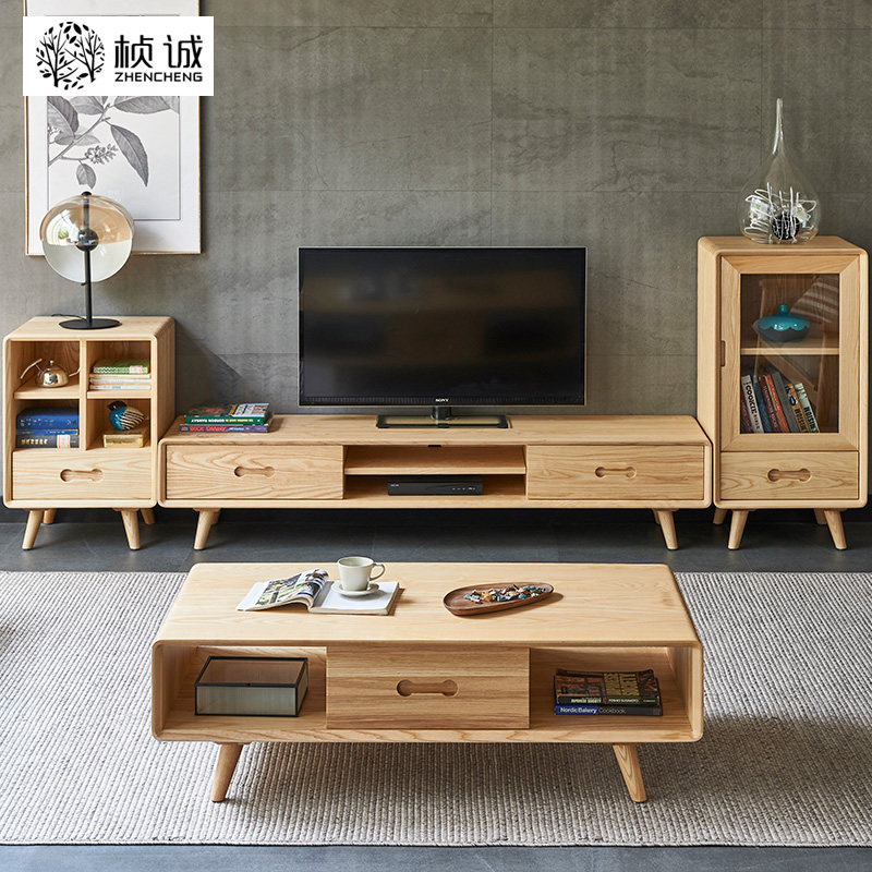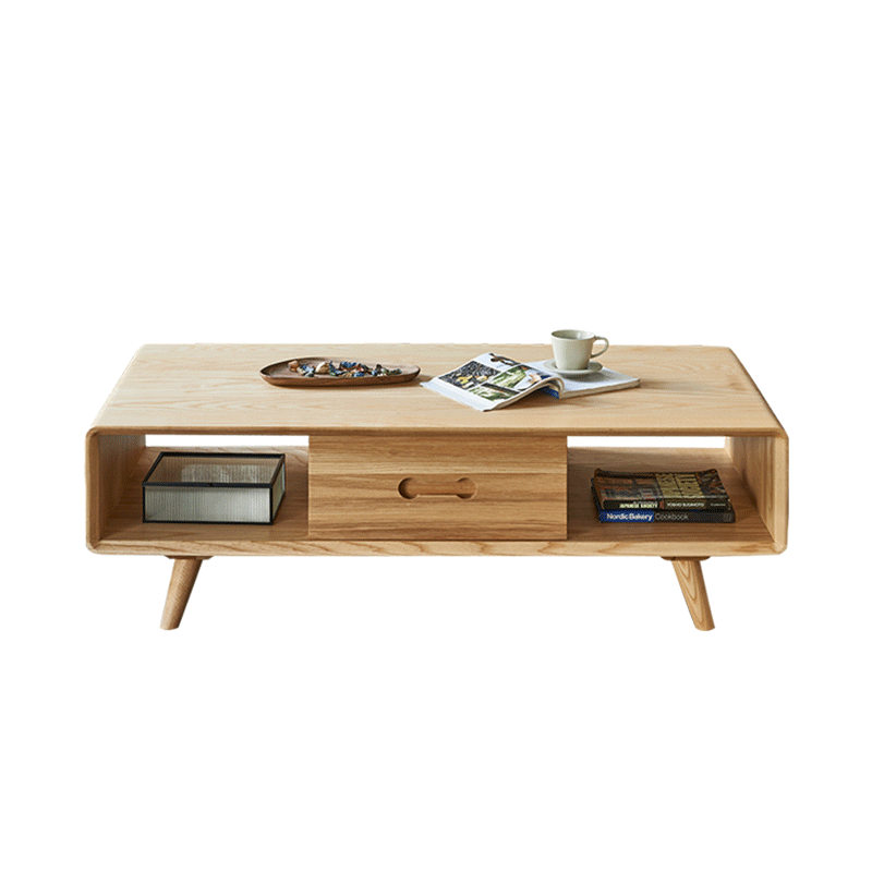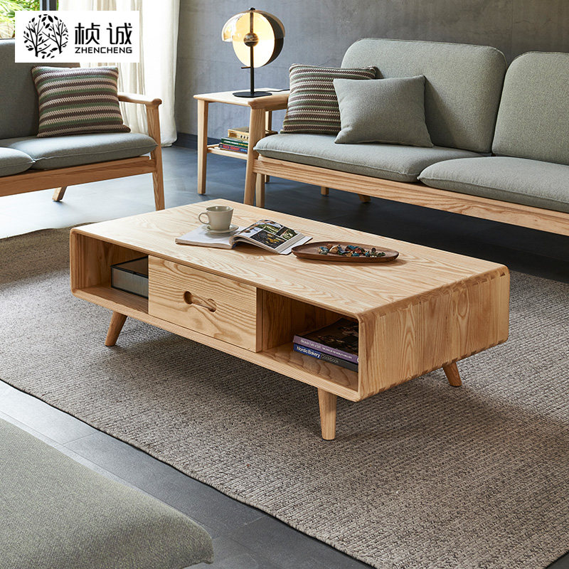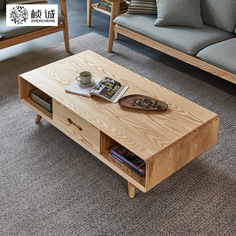 Day-style log tea table minimalist living-room small family type white wax wood rectangular home original wood color tea table minimalist Hyundai-Taobao