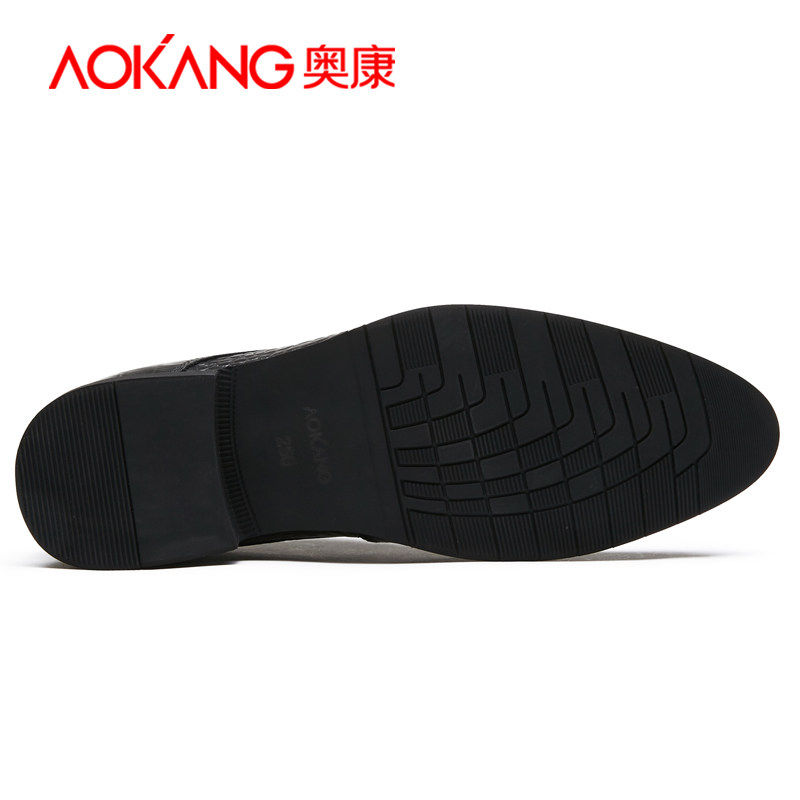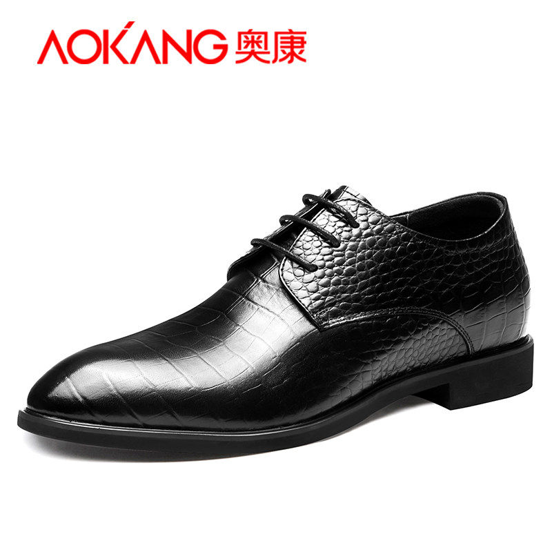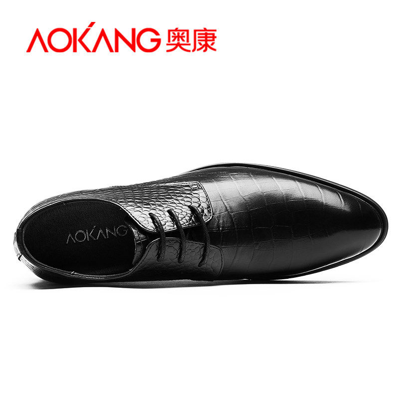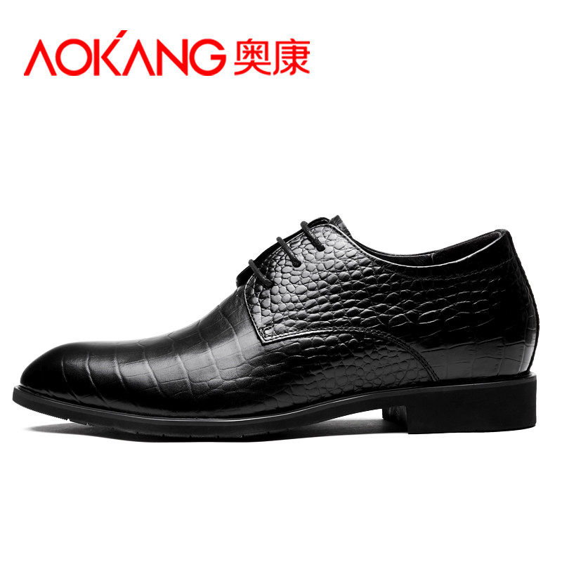 Okom Men's Shoes Fall Business Positive Dress Casual Leather Shoes men Inn genuine leather Han version Pointed Inner Heightening Shoes 6cm