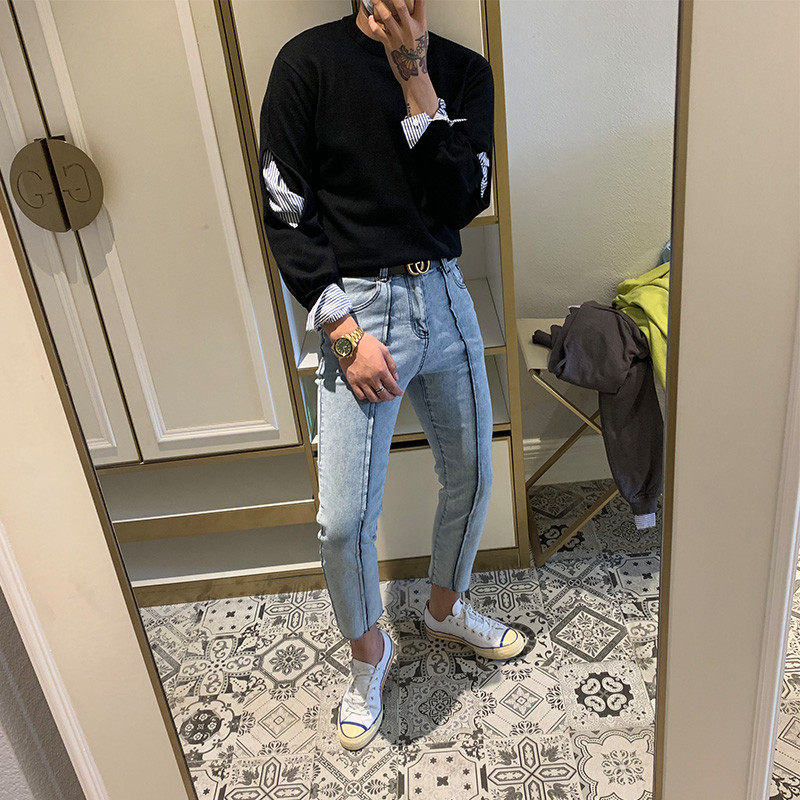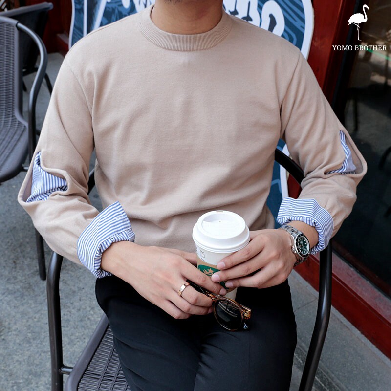 BROTHER new Korean version of loose casual solid color sweater men fashionable simple round neck fake two Jersey tide