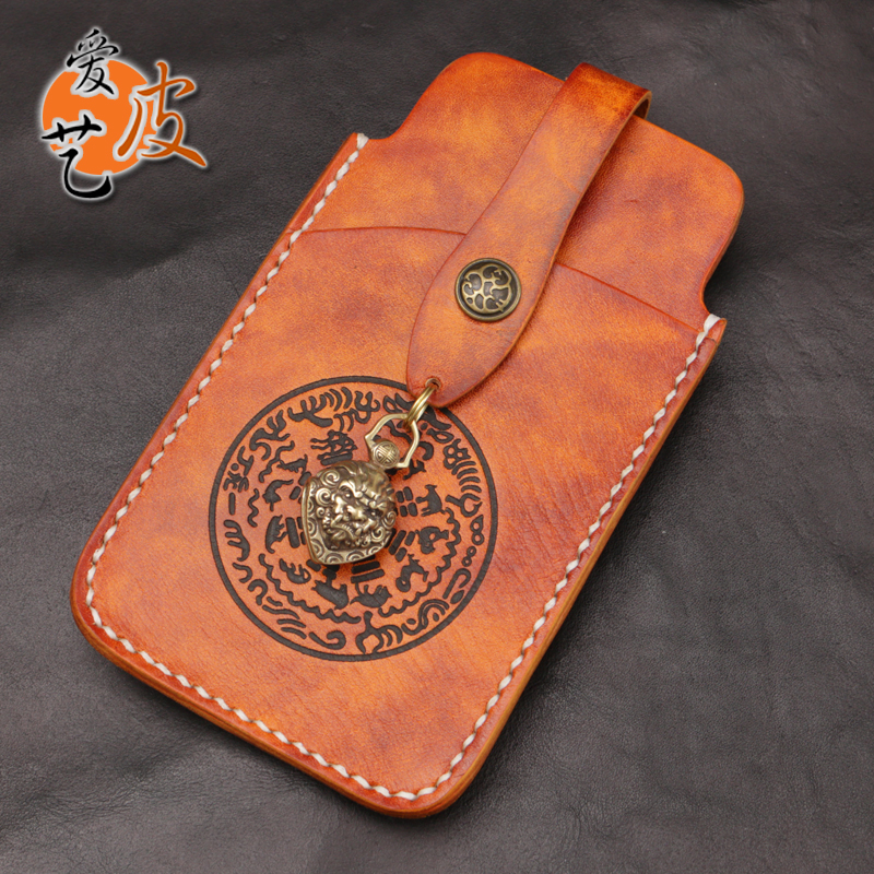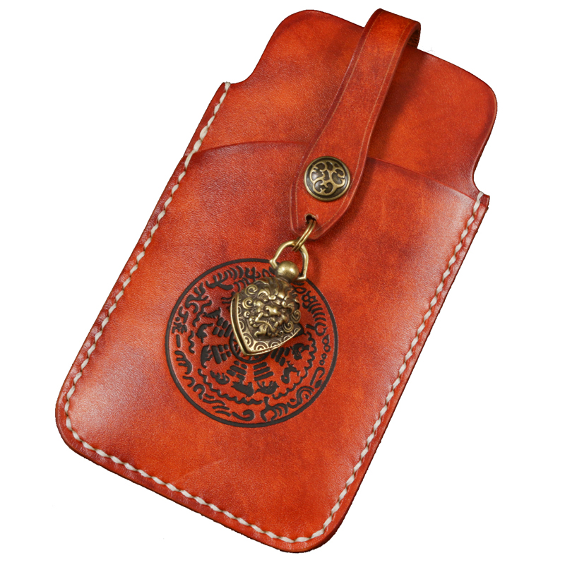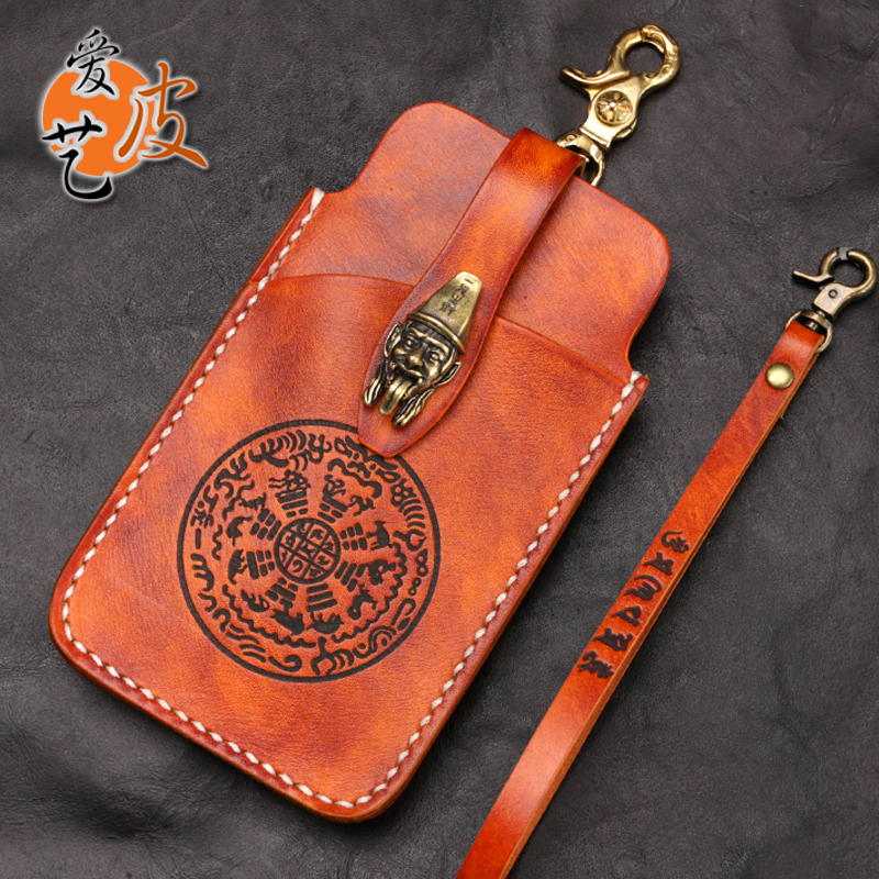 Make money at first sight mobile phone bag Feature handmade vegetable tanned thick cowhide hand-sewn for ten years large screen mobile phone pocket bag