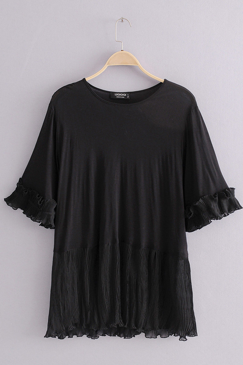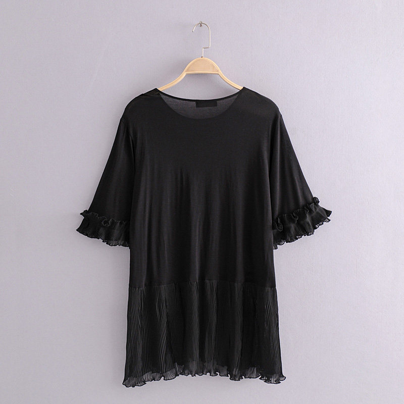 Gugujia custom summer 2018 new fat MM200 catties loose round neck lotus leaf sleeve T-shirt female plus size short sleeve