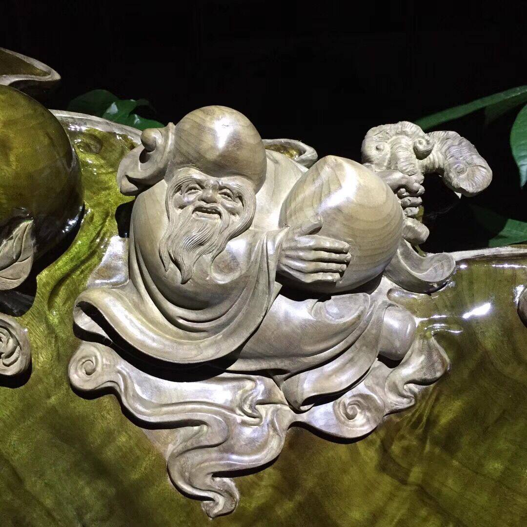 Golden Silk Nanmu Wood Carving Small Leaf Zhen Nanshou Fairy Pendulum Pieces Uki Animals Craft Gift Swaying figures Sinned Wood Root Sculptures