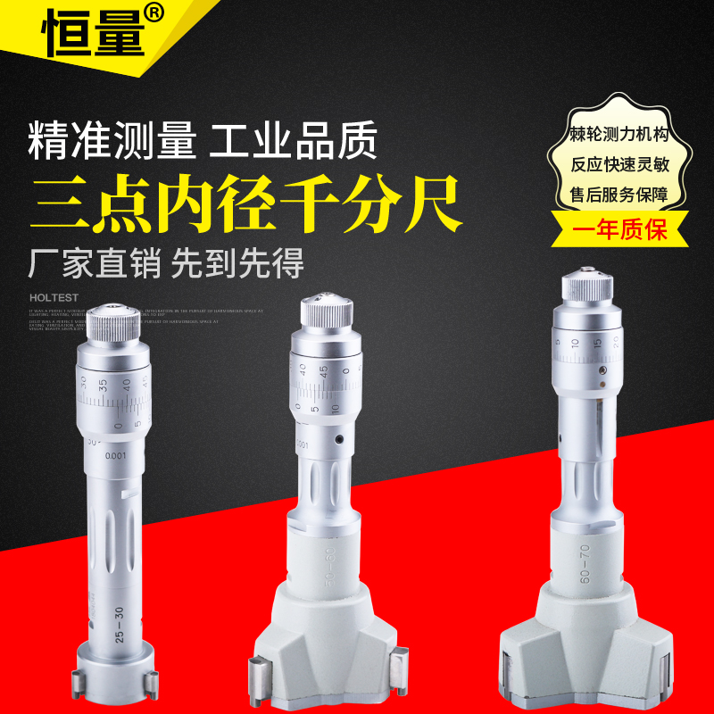 Constant three-point inner diameter micrometer 6-200mm three-claw inner hole measurement 0 004 High-precision inner circle measuring ruler