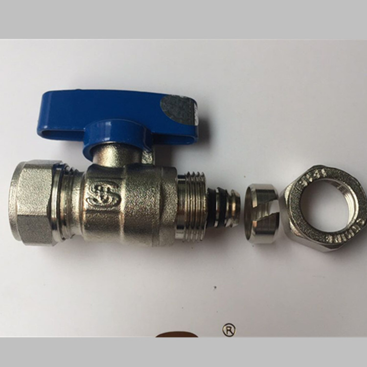 Aluminum-plastic tube brass ball valve electroplated double-headed direct 1216 sleeve type ball valve double-headed live copper rod copper ball switch
