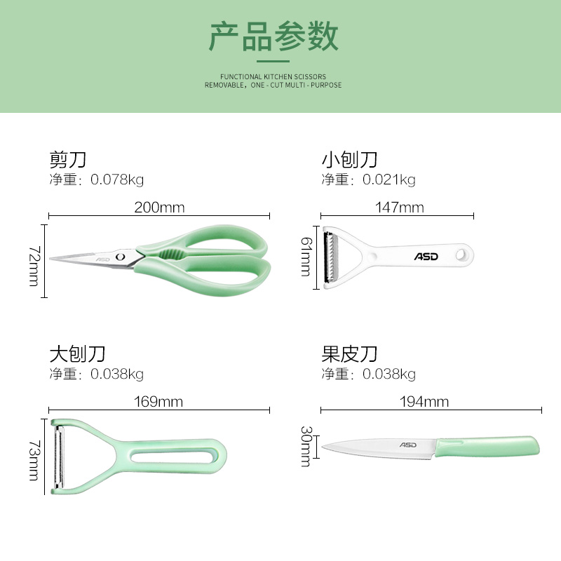 Aishida household kitchen tool set multi-function scissors fruit knife melon knife Stainless steel sharp and durable