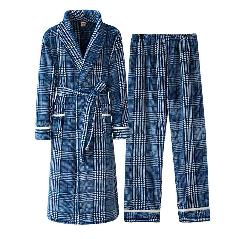 Bathrobe male coral suede winter thickened with velvet pyjamas winter long version of men's flannel suede wardrobes warm autumn and winter pyjamas
