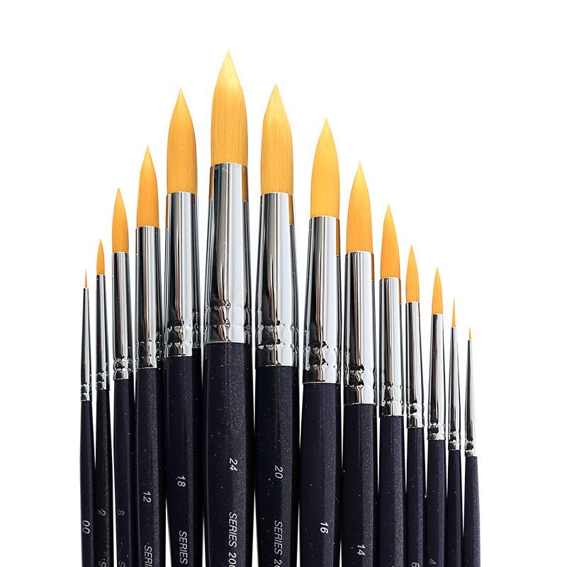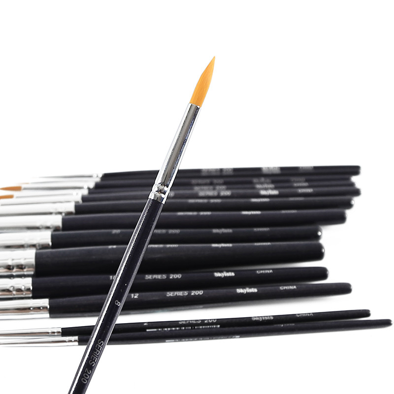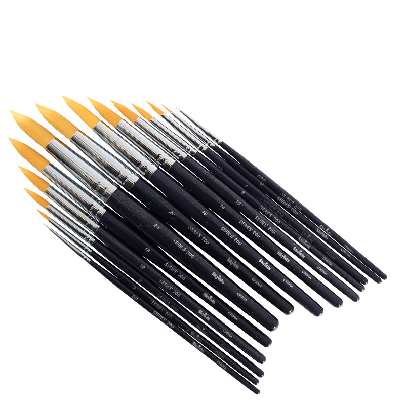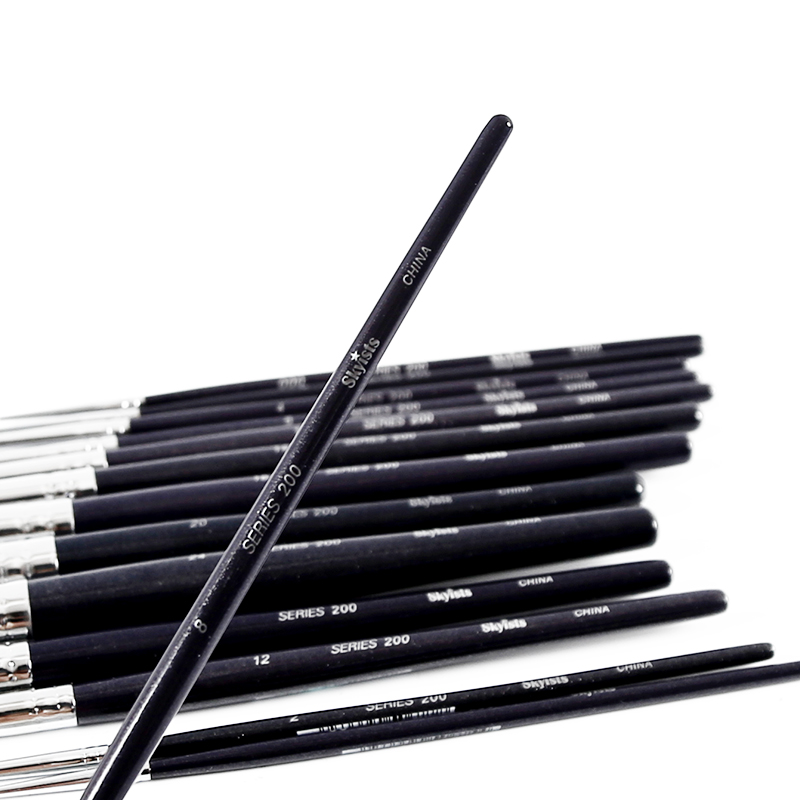 skyalists new concept wooden pole nylon hair S200 series round head watercolor propylene paintbrush short pole hook pen