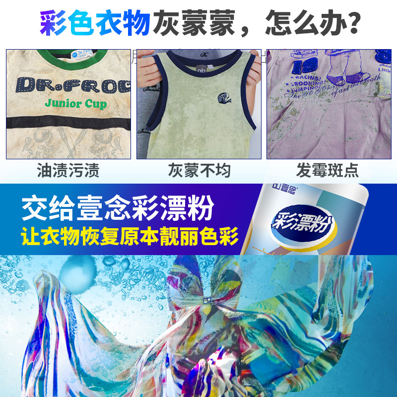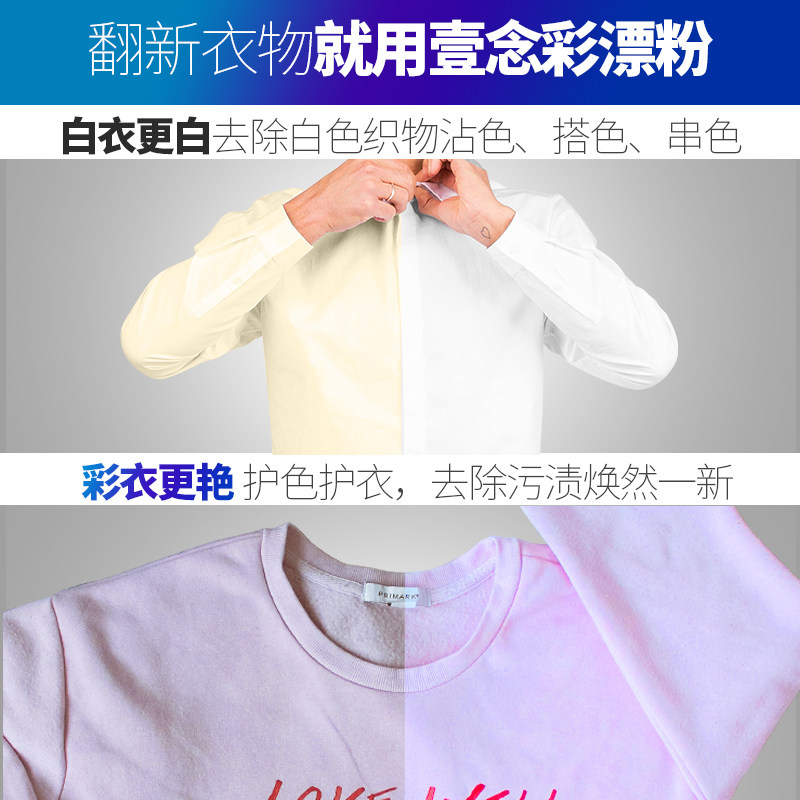 Colored clothes, white clothes, general bleaching agent, color bleaching powder, stain removal, yellowing and whitening, household decontamination and restoration artifact