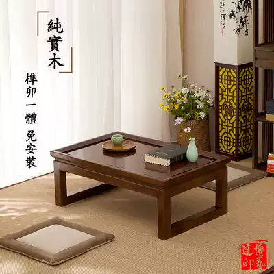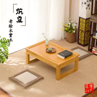 Old elm tea table tatami coffee table table Solid wood balcony low table Simple floor table Bay window small table Kang table