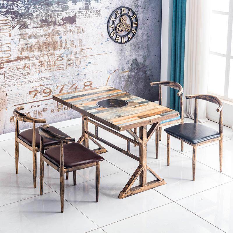 Hot pot table induction cooker one restaurant commercial barbecue meat shabu-shabu smokeless hot pot table string shop dining table and chair combination