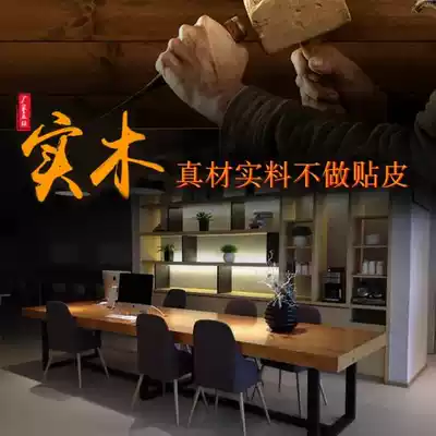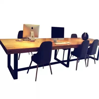 Wrought iron solid wood conference table simple modern desk industrial wind rectangular Workbench negotiation long bar computer desk