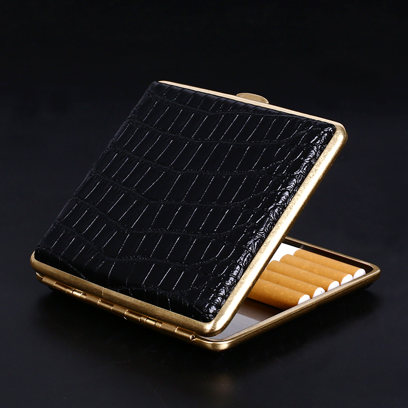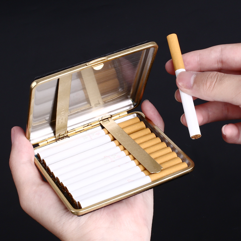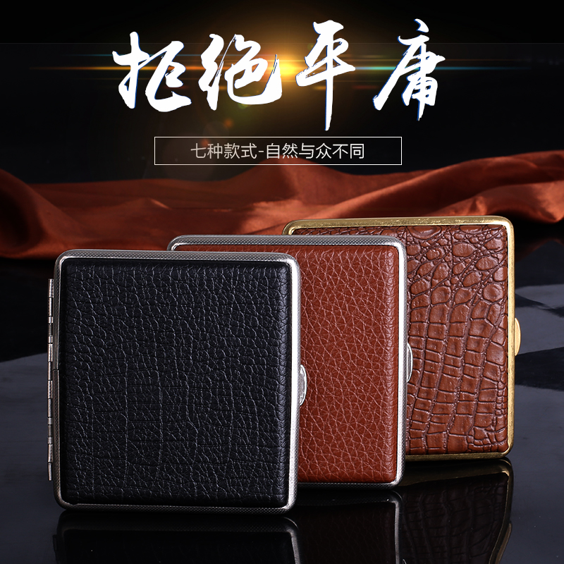 Original cool treasure leather cigarette case 20 ultra-thin portable cigarette case stainless steel leather personalized custom men's gift
