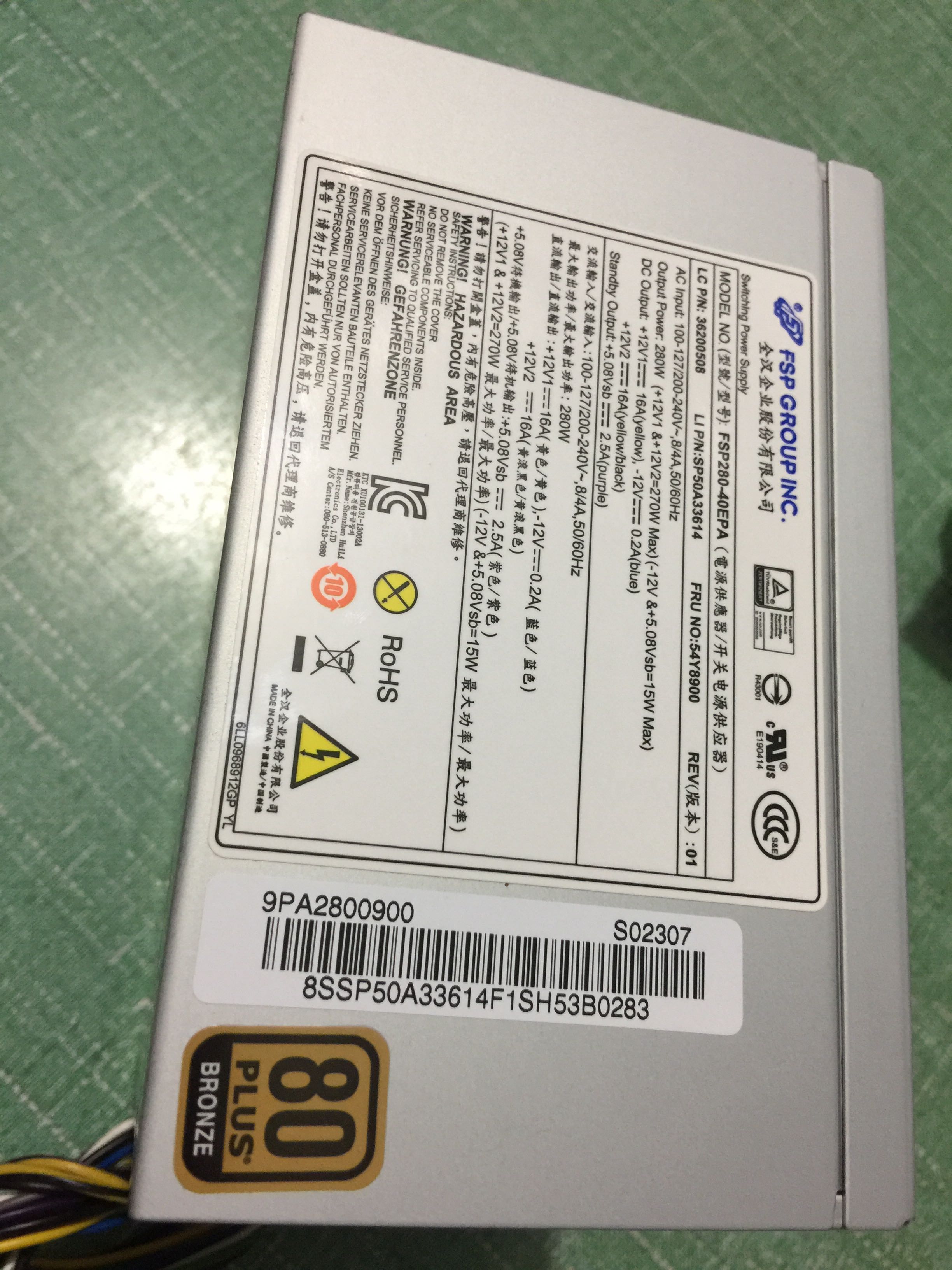 FSP280-40PA Lenovo TS140 TS240 280W 14PIN Server Silent power supply