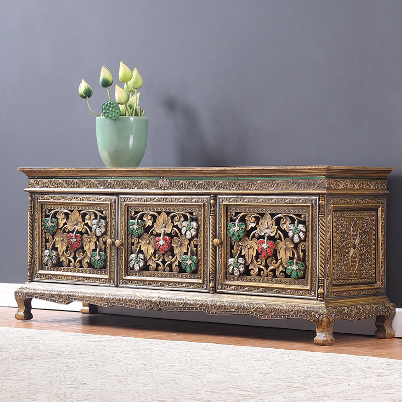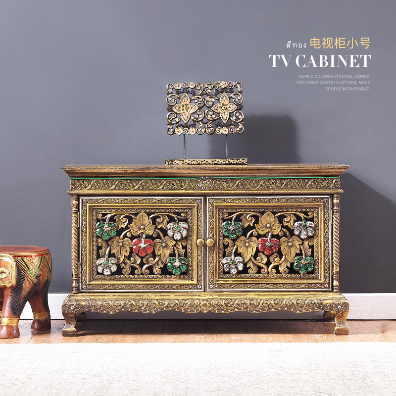Tai Domain Southeast Asia Living Room Living Room Solid Wood TV Cabinet Tai Style Small Family Size 2021 New Furniture Lockers