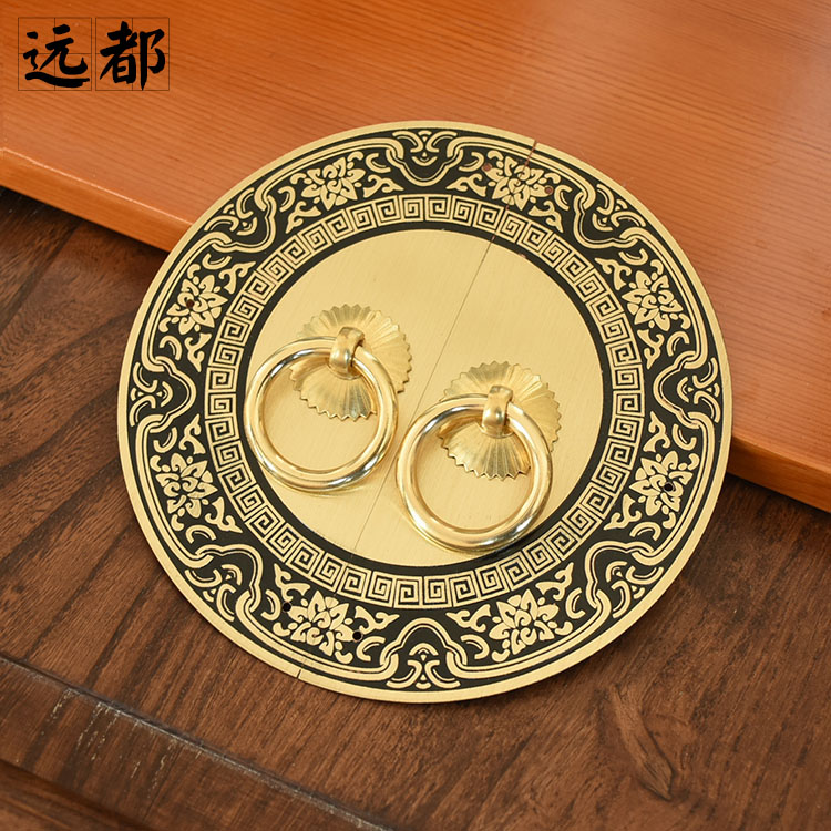 Chinese antique overall cabinet pure copper handle Ming and Qing classical furniture bookcase wardrobe door handle copper accessories round pull ring