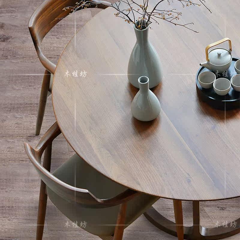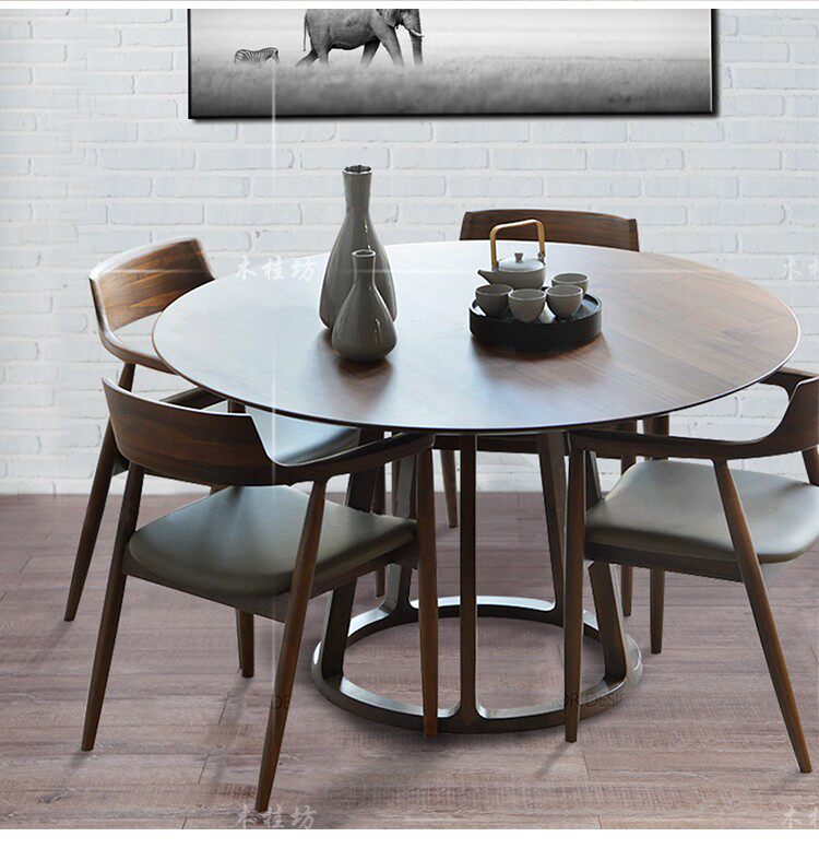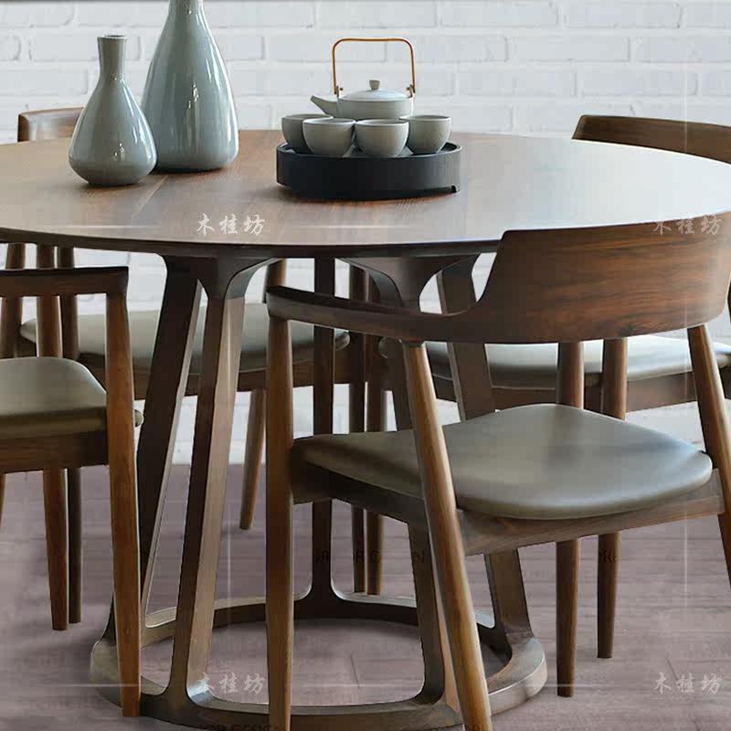 Nordic Solid Wood Dining Table And Chairs Round Table Modern Minima Round Table Cafeterie Cafeterie Roundtable Mini-Family Black Walnuts