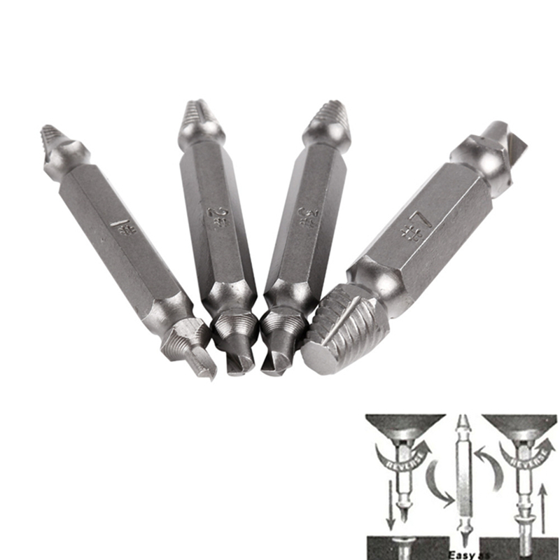 4 pieces of double head screw extractor Broken Screw Dismantling of screw tapping screw Slip Tooth Drill removal tool