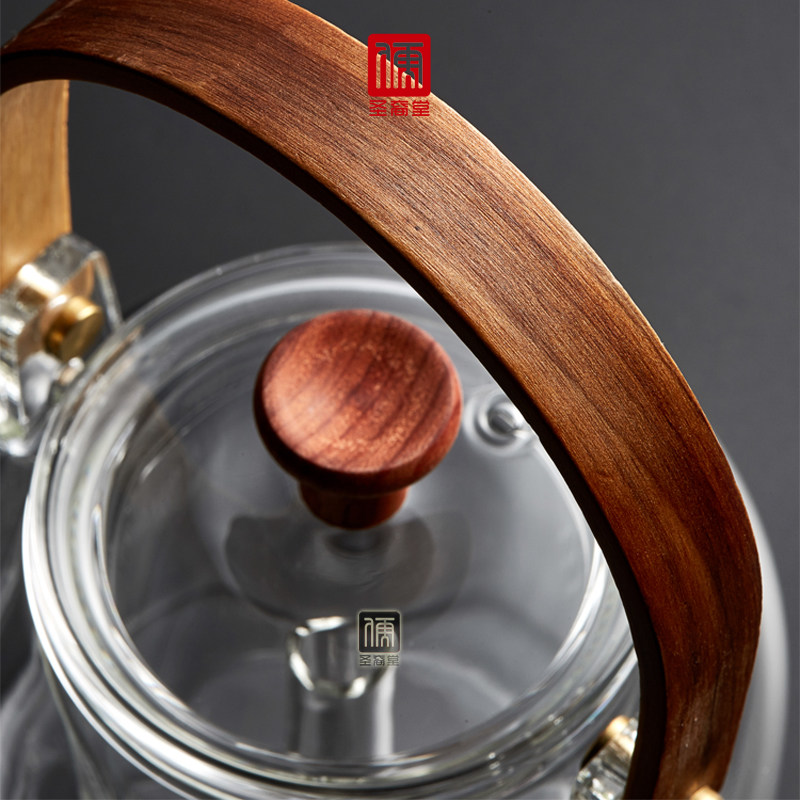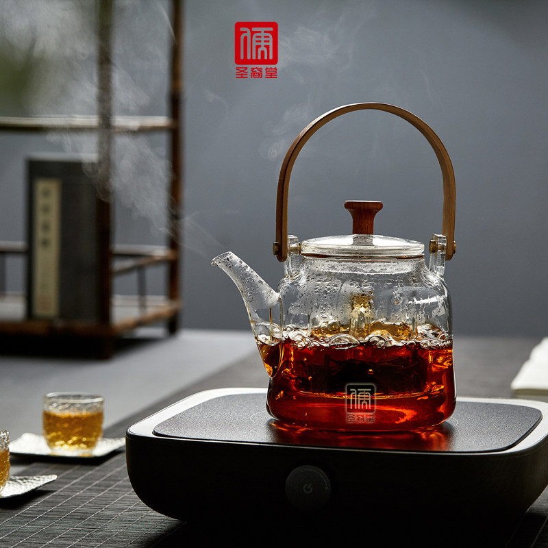 Saint-origin Artisanal Day Style High Temperature Resistant Glass Steamed Tea Machine Pu'er Black Tea Boiling Tea Ware Black Crystal Stove Special Tea Set